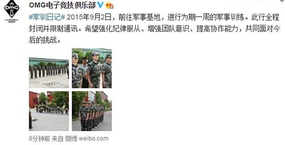 在灵药与无状态“恩断义绝”后,OMG似乎又陷入了平静之中。又是一年九月份,想必大家还都记得曾经的军训吧,不仅锻炼了我们自己的意志,还增强了团队的团结。而继昨天耗子宣布离开OMG后,OMG官方微博也发声,表示OMG将开启为期一周的封闭训练。以下为微博原文。