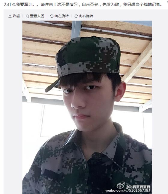 诺夏也Po出自己的帅照: