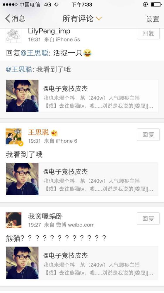 皮杰浏览的就是这个“熊猫TV”贴吧,一个“小智模样”的主题贴已经曝光,紧接着还有一个“王思聪本人”的帖子也紧随其后。而据皮杰询问内部人士后,得到的消息是小智已经被这个新生的神秘平台熊猫TV挖走。