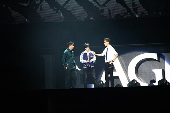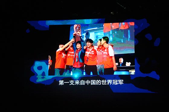 开场秀讲了一个简单的故事:一个选手生涯“失败”的教练通过自己的故事打动一个任性的年轻人的故事,把电竞的梦想传承下去。