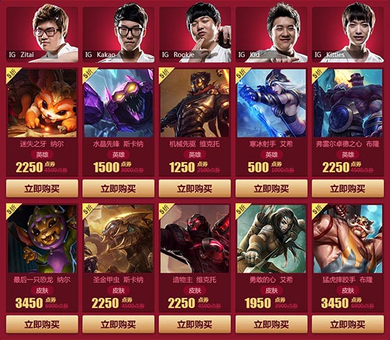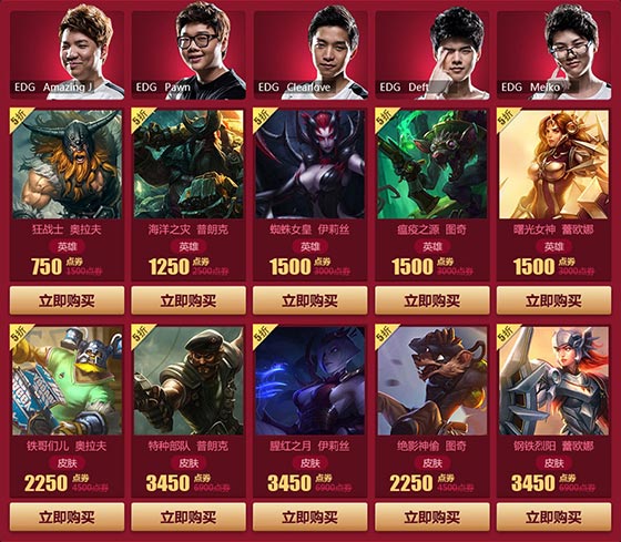 同时我们也选出两队的出征阵容进行半价优惠活动,以回馈给广大关注并支持LPL战队的玩家。