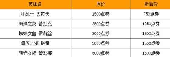 S5出征队伍英雄、皮肤半价促销