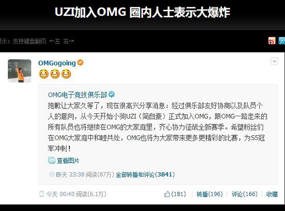 这也许只对于我们LPL的观众来说,最遗憾的莫过于OMG。