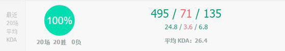 近日的比赛100%的胜率,近500个人头,26点KDA。