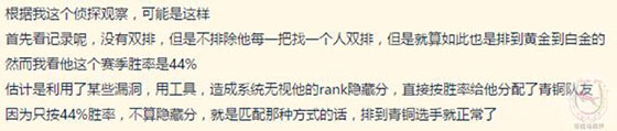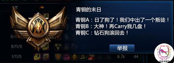 今日,在LOL官方论坛,有人举报某玩家疑似利用外挂或系统漏洞已经完成了67连胜,65场遇到青铜局。而且最让人惊讶的是,作为一名钻石选手,他居然排位遇到9个青铜!这还是什么鬼?这在匹配都很难发生的事情,居然在排位中出现!