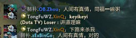 TI5中国区预选赛B组最后一轮,已经丧失出线机会的OB与TF.wz上演了一场同福内战,而这样一场比赛也充满了“情谊”,真可谓人间有真情,同福一碗粥。