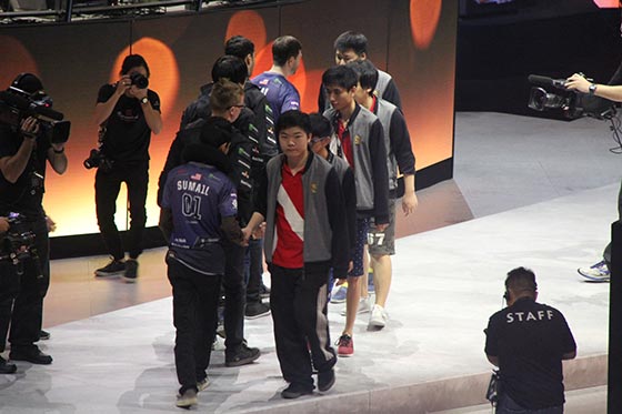 比赛开始后,CDEC面对实力强大的主场队伍EG并没有畏手畏脚,双方Gank游走基本打成均势。只是Sumail影魔发育一直无解,前中期拿到不少人头。然而比赛转折出现在中期CDEC中路想抓影魔,不料被小娜迦直接大招睡住5人,影魔跟进准备贴身放大。但是就在小娜迦大招结束的瞬间,CDEC小智的海民精髓开滚,带上所有队友竟然率先秒杀了影魔。此后EG溃败,CDEC在追击过程中又连续击杀暗牧和电魂,CDEC直接攻破对手中下两路高地。此后Sumail的影魔仍然自信的不出BKB,这使得在随后CDEC对上路推进的团战中,影魔买活仍然被击杀,EG打出GG。