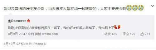第二天凌晨,当事人Miss终于回应:“只是普通朋友一起吃饭合个影,你们不要误解啊!”