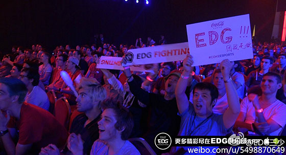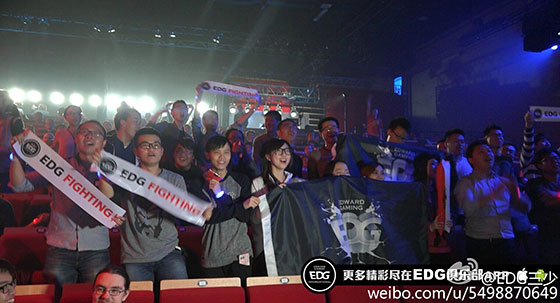 今天,在看台的另一头,有一群一直高呼EDG,EDG.EDG!的粉丝,他们嘹亮的声音穿透了整个普尔曼会场。
