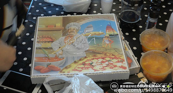 今天早上,明凯同学化身为送披萨小哥,他还搞逗的在披萨盒子上签上了名字
