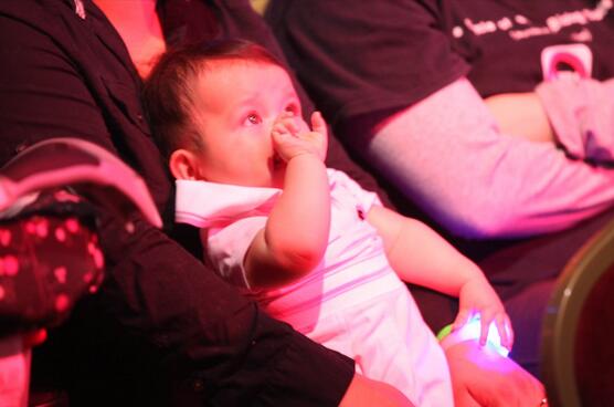 在总决赛的现场我们或许能看到很多的来自世界各地的粉丝,他们或许带着提莫的帽子,也有打扮成“龙虾”,“金克斯”,“女主播”的玩家,然而在法国巴黎站,这个可以容纳上千人的普尔曼会场,我们惊艳的发现了一个“Baby”! 安静的躺在妈妈怀里,和众多粉丝一起看着CLG是否能出线的关键比赛。