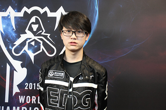 在小组赛C组的出线对决中,虽然EDG再次负于了SKT,但EDG还是凭借自己稳定的发挥战胜了KTB和H2K成功小组第二晋级。赛后本刊记者皮杰和记者们采访了EDG的野辅组合:厂长、妹控。两人面对提问表示再次遇到SKT会有信心战胜他们。