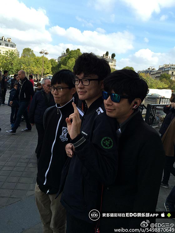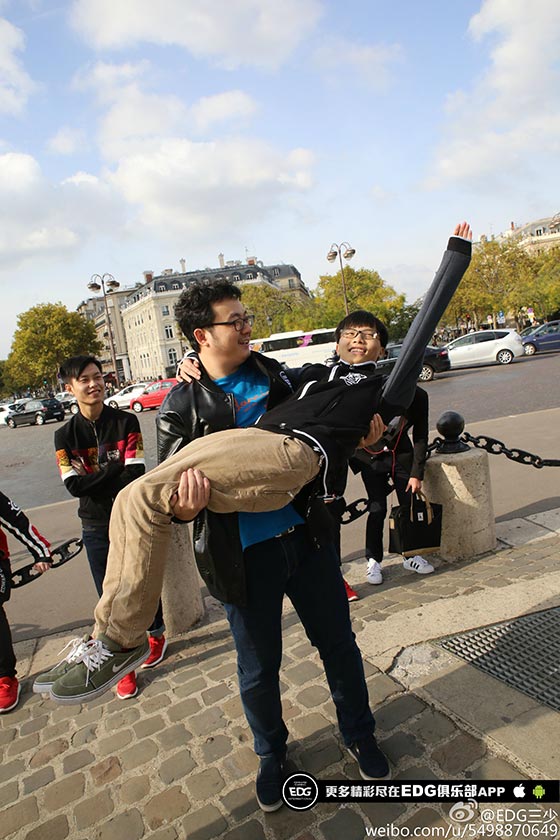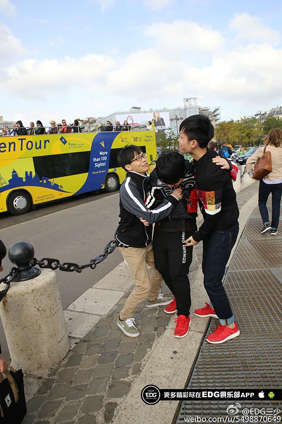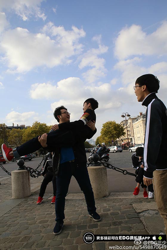 队员们都表示,这才是他们认识的巴黎。从凯旋门上下来,我们偶遇到了SKT的队员,原来他们也选择了在今天出行。爱萝莉同学一把拉住了FAKER,二话不说,合照。