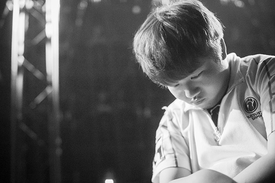 iG在输掉同FNC的比赛后,Rookie瘫坐在座位上,眼里含着泪水,久久不愿离去。当镜头给向他:一张失落的面庞。虽然法语解说带动着全场喊出他的名字以给他加油,但从他的表情上来看,似乎并没有听到外界的一点声音。