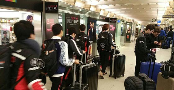 过了一会,韩国队伍也来了,首先出现的是虎牙战队,并没有太特别的地方。接下来,SKT来了,他们选择了在一个离其他队伍都稍远的地方休息。Marin比较活跃,经常走来走去,而他们的教练也开始逛起了候车室的商店。说到购物,最后出现的KT战队看来欲望最强,几名选手都在一家护肤品店选购产品。