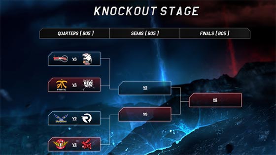 淘汰赛阶段分为三部分:英国伦敦的四分之一决赛;比利时布鲁塞尔的半决赛以及德国柏林的决赛。淘汰赛的每场比赛都是 BO5。获胜的一方可以继续前行,而失利的一方只能告别2015全球总决赛。