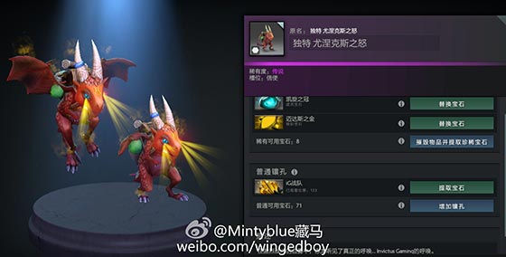 在巴黎期间,按理说玩游戏的话自然应该多玩玩LOL。可是我并没有欧服账号,还好Dota2的账号是全球通用,我便索性在闲暇之余拉了几个国外的小伙伴开始了Dota2欧服被捕鱼之旅,而且我任性的把把打大核。结果自然是输多胜少,但是玩的很开心。现在回到国内,昨日Dota2分部也顺利晋级法兰克福秋季联赛。睡前居然萌生了一个想法是去Dota2分部找新领队开开黑,还有,由于super苏鹏最近在比赛中一直使用默认信使”毛驴(luo)“,此事许多粉丝找我反馈。我便特意找一位神秘大哥哥精心准备了几只价值不菲的iG信使给他挑。我是不太懂,大家鉴定一下吧: