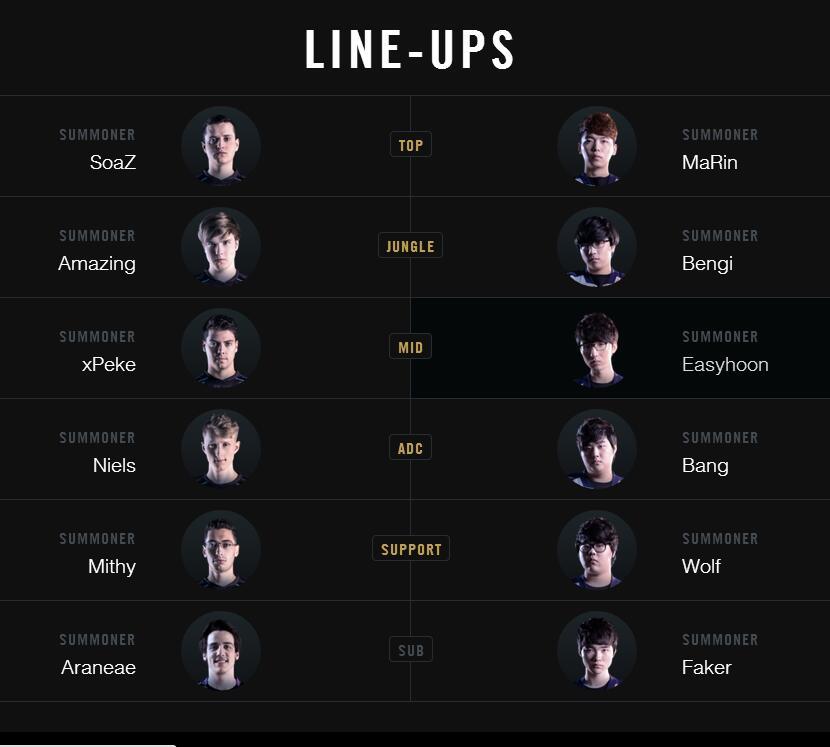今日拳头官网对四强对阵进行了更新,SKT与OG一战的信息被放出,图中再次显示了Easyhoon首发,Faker替补: