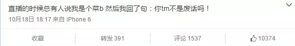 职业选手如果很爱发微博,多多少少会被人认为是不专心训练,而退役的职业选手自然就可以花式玩转微博,比如下面这位段子王。