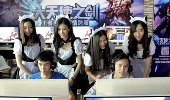 一般只有在日本才能出现的场景,近日真实出现在广州的一个网吧中。四位穿着出位女仆装、头戴萌猫耳的性感美女突然降临,为玩家提供全方位的陪玩服务,在大部分为男性玩家的网吧之中格外吸引人们的目光,引起一阵不小的骚动。