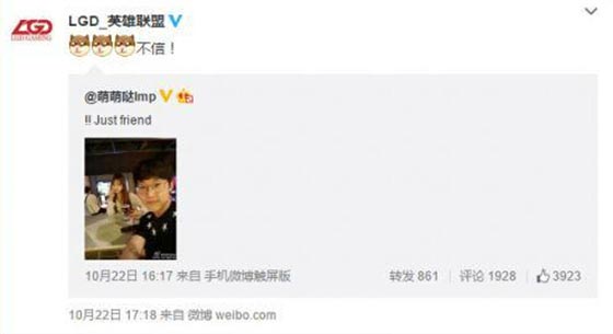 不过imp的说法是“just friend”,只是朋友,但是LGD的官方微博都表示不信,大家信吗?