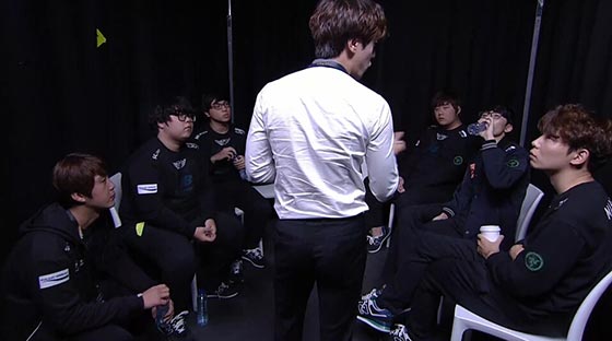 然而SKT“老奸巨猾”的与OG打起了“太极拳”,开始启用剑姬单人带线的4-1分推战术。在剑姬个人强力带线能力的影响下,OG全队节奏被彻底打乱,同时SKT中路Easyhoon的沙皇也6神装到手。SKT在后期抓住两波对手打野寡妇的失误,成功将其秒杀后,先后拿到大小龙,成功将比赛劣势全部扳回。