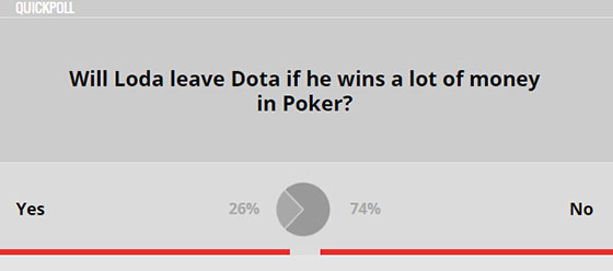 并且扑克比赛不像dota2比赛那样,需要持续45分钟。他持续的时间很短,一个细小的失误就可能葬送掉这个牌局。Loda完全能够胜任这件事。Loda以他的决断能力和平衡风险和利益能力出名。