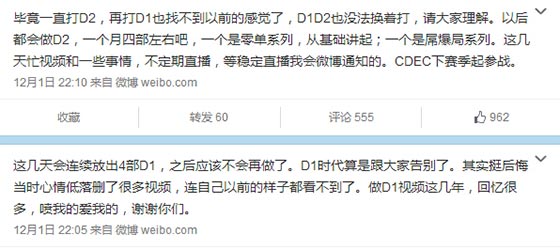 昨晚Pis在微博向广大粉丝宣布,将于近日放出最后几部DOTA1视频,之后便不会再进行DOTA1视频的更新。