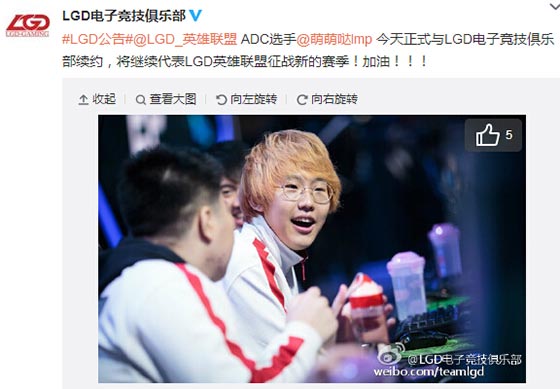 LGD战队官方近日宣布Imp完成续约。