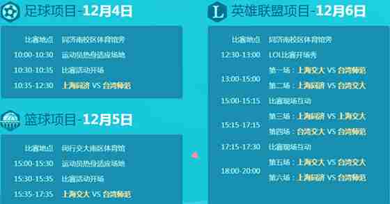 除了体育项目的切磋交流,台湾高校成员抵达后还将与上海高校共同举办两岸高校体育教学研讨会,交流分享教学经验。并且在四个参与名校的基础上吸纳更多两岸三地的名校参与到该项赛事中来,拟把该项赛事发展成为两岸名校体育对抗赛中的传统赛事。
