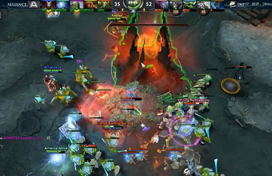 进入后期,虽然正面战场A队已经无力同VP抗衡,但是先知靠着A杖、刷新制造的大量小树人还是率先破掉VP上路高地,并且随后以几乎同样的套路再攻破VP中下两路高地。面对经济领先对手超过2W,人头上也有着小20个巨大领先,VP显然不愿意就此放弃,他们展开了将近20分钟的基地保卫战。