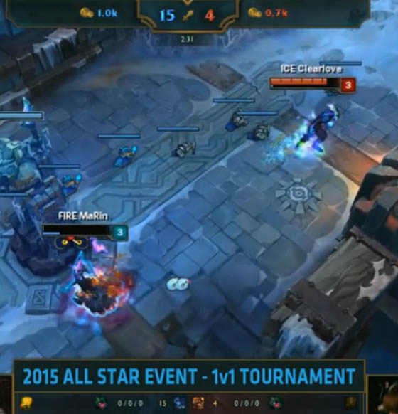 根据拳头的规则,本场比赛全部采用射手,即ADC出战,并且不允许出肉装。来自LPL和小狗和Koro1分别选了滑板鞋和螃蟹,但前期并没有发育起来。ICE战队寒冰空大数次,飞机发育极好。但无奈ICE战队各种被单抓,最后Fire战队打出一波团灭之后直接摧毁了基地。