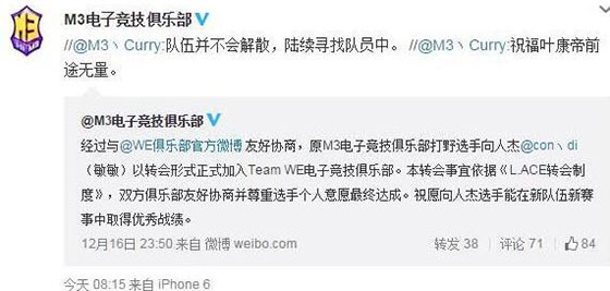 打野转会WE M3欲寻新人重组