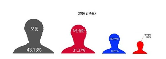 经过三年的努力,韩国选手在世界赛上赢下了一个又一个的冠军,现在电竞圈的局势已经很明显,那些优秀的韩国选手在本土以外的赛区能够获得更好的收入。在LPL赛区里,战队大肆使用韩国选手,甚至在欧洲或北美LCS的赛区韩国选手也能得到更高的薪酬。早些前解散的Najin战队就是因为合同没有谈拢,在LCK赛区除了faker等明星选手能够拿到一个丰盛的报价,大部分人的工资远不如那些以韩援身份加入其它赛区队伍的选手。在薪酬满意度调查中,有37.37%的选手对目前的收入感到非常不满,比较满意自己工资的只有19.61%。