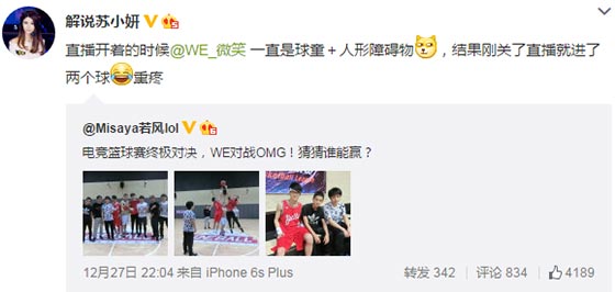 昨天晚上有一堆大家熟知的电竞明星在篮球馆对决,老WE成员除了肯定在努力训练的明凯之外其他人都到齐了,若风、卷毛、微笑、草莓共同在一个球场打球的场面,实属罕见。