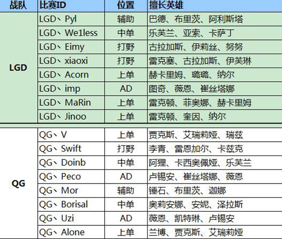 LPL春季赛A组各战队名单
