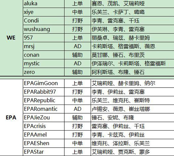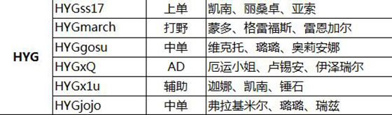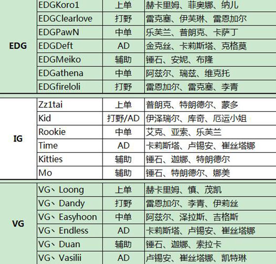 *注:此名单保持到2016年1月14日LPL春季赛第一周