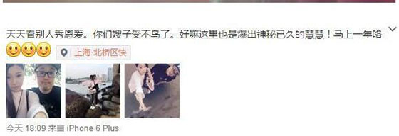 天天看别人秀恩爱。你们嫂子受不鸟了。好嘛这里也是爆出神秘已久的慧慧!马上一年咯。