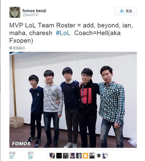 之前有谣言某些前三星战队的选手不适应中国生活欲返韩国,但是2016LPL春季赛的队员名单粉碎了这些不实消息。就在昨天韩国媒体曝光了MVP重新组建的新阵容,这支曾打造了Ozone和Blue的组织欲图利用他们的丰富经验重新打造一支世界级的队伍。但目前公布的选手名单没有什么知名选手,完全是一个新秀组成的队伍,还需后续观察他们的表现。
