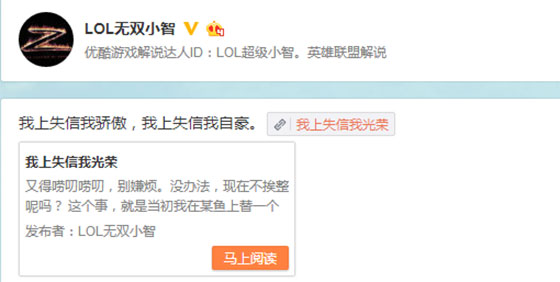 小智近来麻烦不断,先是因“脚踩两只船”被王校长怒骂,随后又被国家政府机构列入失信名单。不过,智哥在最新微博中表示:我上失信我骄傲,我上失信我自豪!