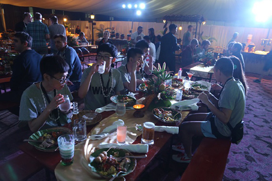 主办方还为选手们准备极具特色的欢迎晚宴,表演以及食物也是花了心思,在帐篷里用餐特有一番风味。