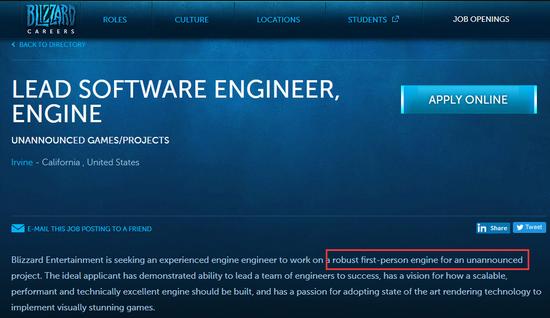 近期,暴雪官方的一则招聘启事引发了玩家的关注,该启事是招聘第一人称游戏的高级软件工程师,这里的游戏指的并非是《守望先锋》,而是一款全新的第一人称游戏。