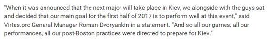 “当2017年的Major举办地宣布在基辅时,我们就已经决定要为这次赛事做好充分的准备,无奈下只好放弃SL-i群星联赛,这样我们会有更多时间去训练”