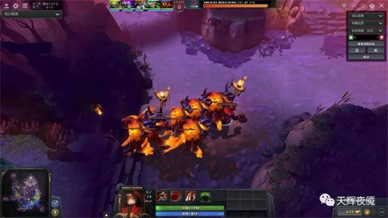 第9波:夜魇小兵和米波,这波没那么难,米波会放网,小心一点就好,投石车要尽早杀掉,最好火枪狙杀,屏幕顶部闪电那里橙色的光圈要小心躲开,那里是投石车的炸弹轰炸区域,伤害非常高