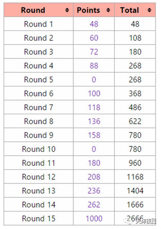 无论胜利或者失败,都将获得积分奖励,下面是波次和奖励点数的关系表: