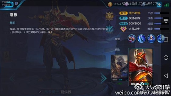 解析:可以让夏侯惇在低血量的时候保证自己的一个生存,直白的说就是越战越勇