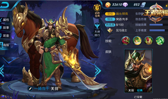 3.关羽的被动可以被敌人打断,被敌人控制或者受到到减速效果达到一定程度被动就会消失,因此小心敌人的控制技能,并运用好二技能的减除控制效果才是王道。
