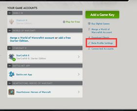 在成功登陆你的美服战网账号后,点击进入“Account”界面,接着点击进入位于界面右边的“Beta Profile Settings”