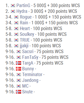 2015首项SC2国际大赛Gfinity大师赛决赛 韩国神族PartinG决赛4-2战胜同胞Hydra夺冠 获得5000美元和300个WCS积分。