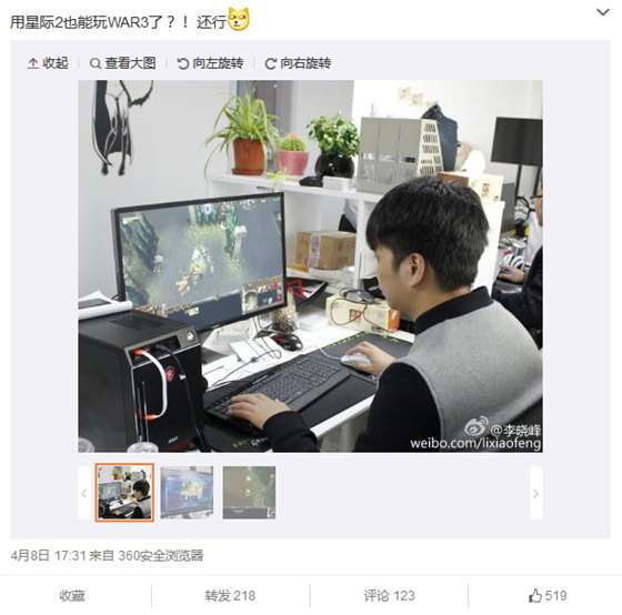昨日,电竞巨星人皇李晓峰Sky在微博发布了自己在《星际争霸2》上试玩高清版《魔兽争霸3》的照片。